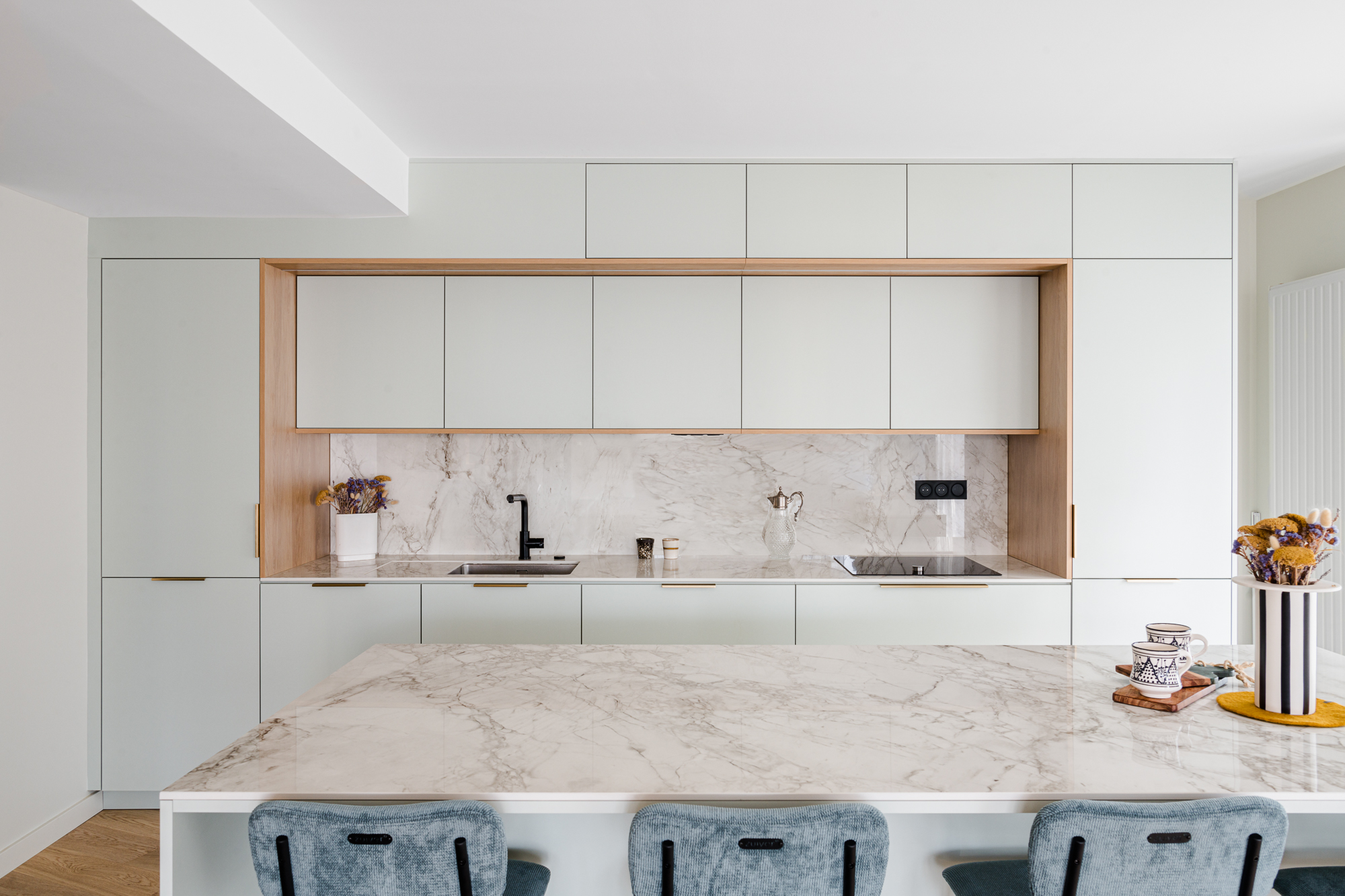 Depuis plusieurs années, nous n’arrivons pas à mettre la touche finale à l’agencement de notre cuisine. Laura qui est venue sur place a su identifier nos attentes et nous a fait une proposition qui nous a tout de suite séduite. Elle a su prendre en compte tous les paramètres et nos goûts pour proposer l’agencement et les matériaux. Nous avons apprécié le professionnalisme des échanges.